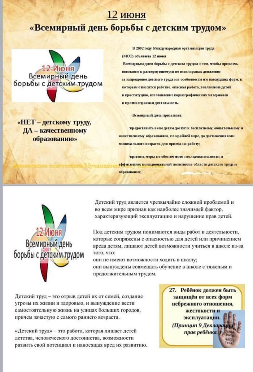 12 июня Всемирный день борьбы с детским трудом