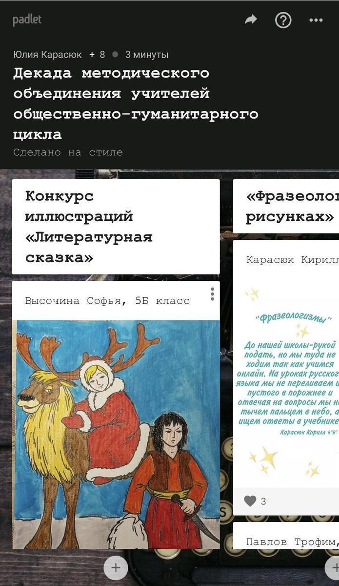 22 қаңтар 2021 0 1 2 3 4 5 Платформа PADLET Творческие работы наших детей вы можете увидеть на платформе PADLET. По ссылке можете зайти и ознакомиться.https://padlet.com/yuliyakarassyuk/1zgghfbu921cloe