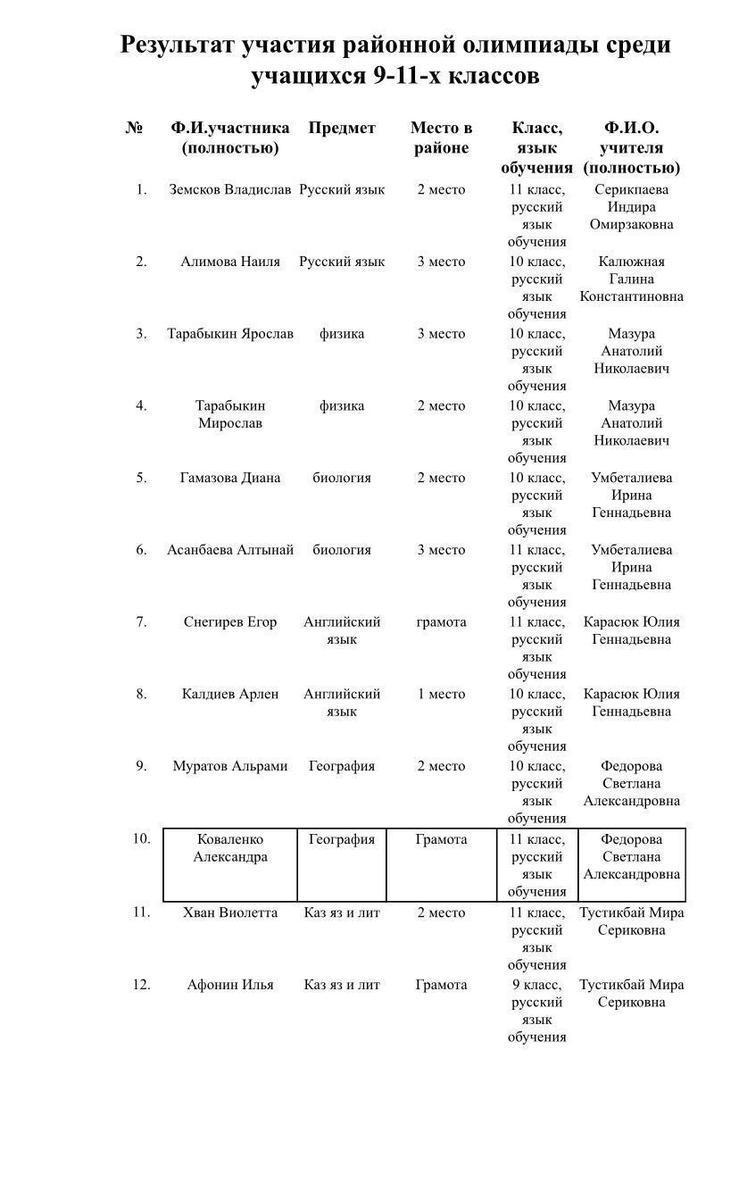 Прошел районный тур Республиканской олимпиады по общеобразовательным предметам. Наши ученики добились следующих результатов. Поздравляем наших победителей. Желаем удачи на городском туре.