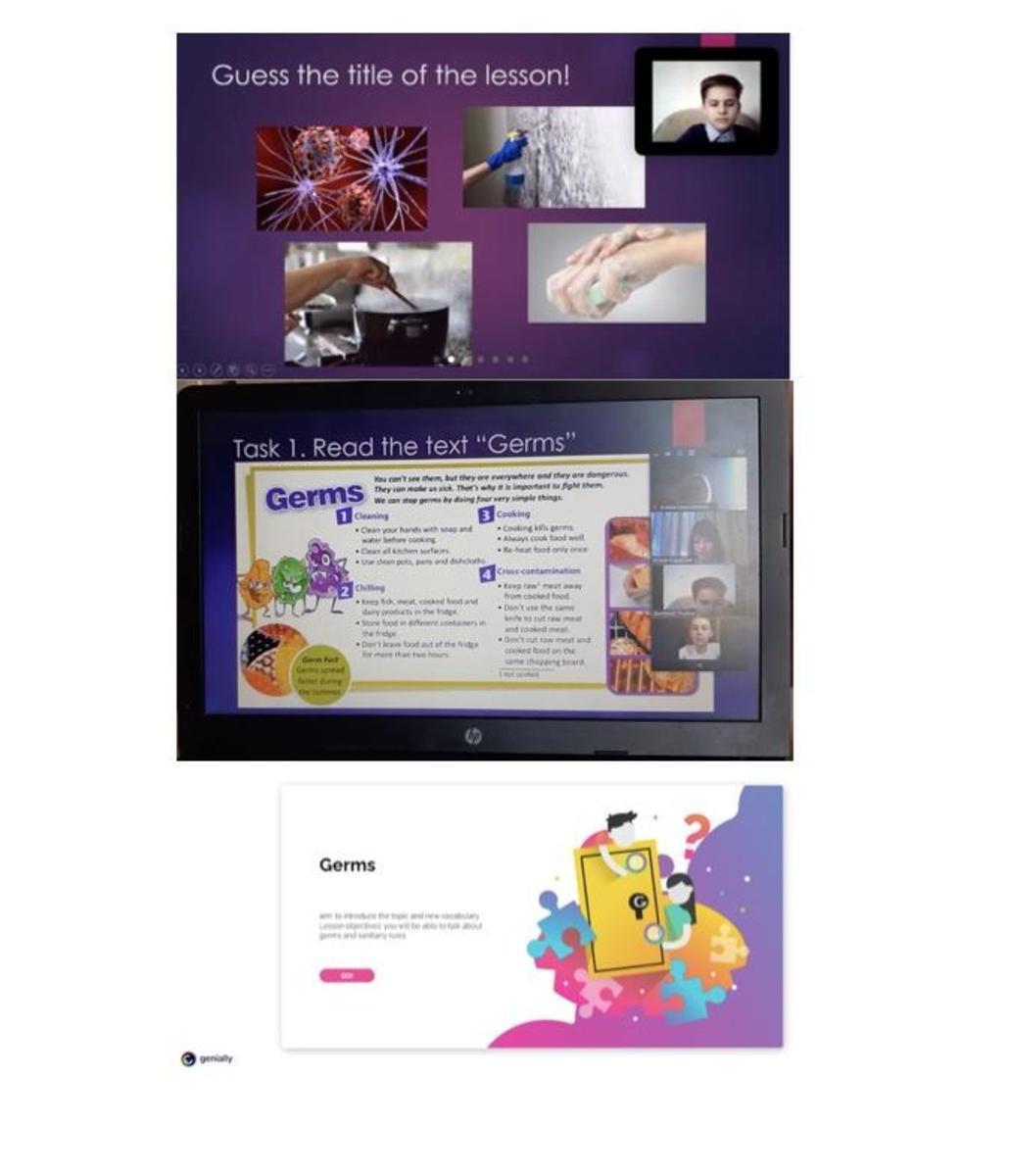 27 января 2021 года в рамках декады методического объединения учителей общественно-гуманитарного цикла, учителем английского языка Карасюк Ю.Г. был проведен открытый урок с учащимся 6 "В" класса по теме "Germs", на которым учитель продемонстрировал возможности интернет-ресурса Genial.ly, представляющий собой инструмент, позволяющий проводить интересные интерактивные уроки.