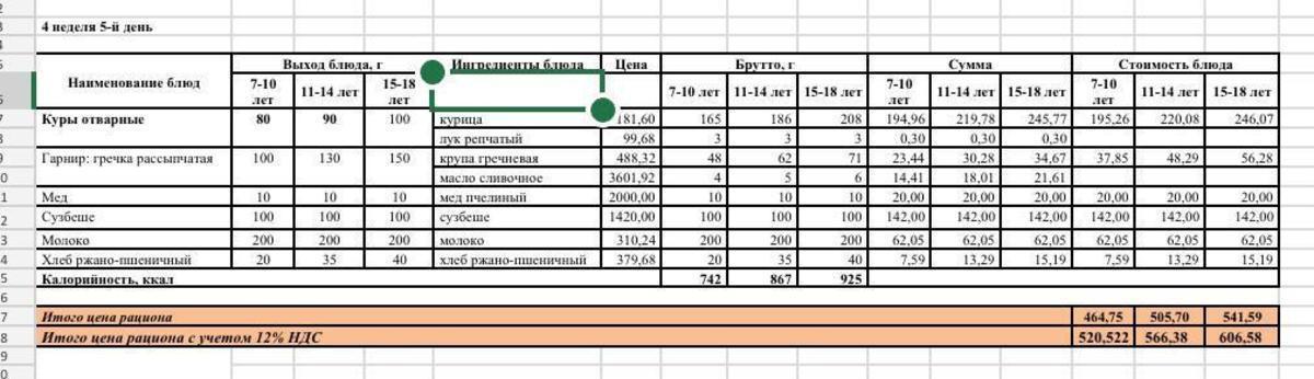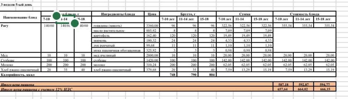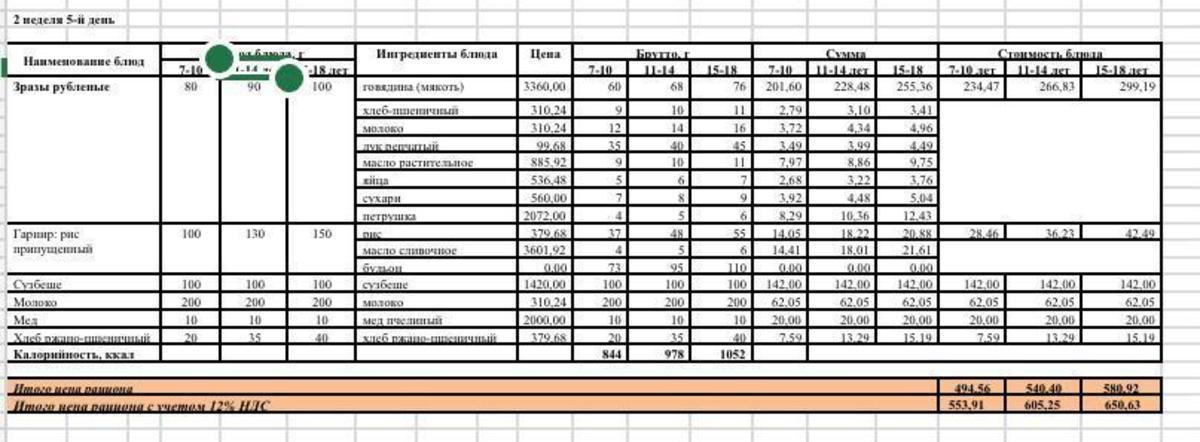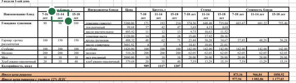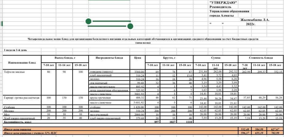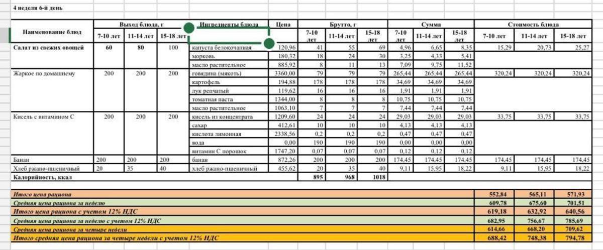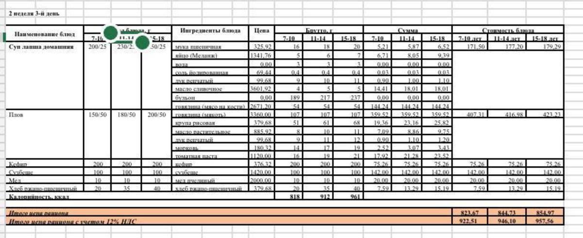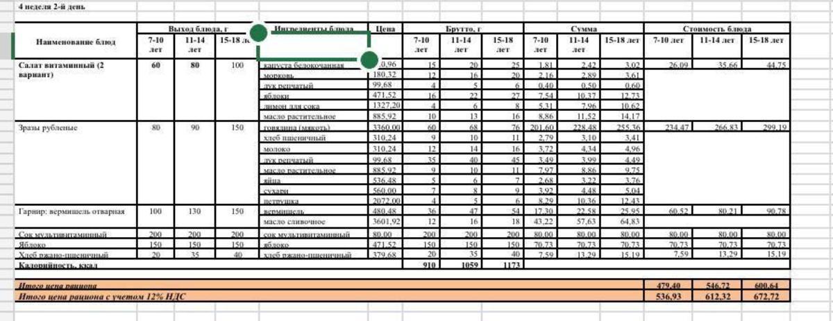 Питание. Меню зима-весна 2022г