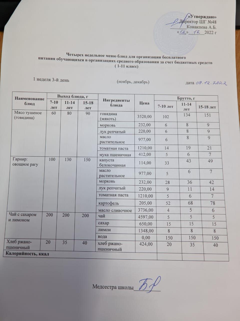 07 желтоқсан 2022 0 1 2 3 4 5 Меню на среду (1 неделя 2022-2023 уч.года) Четырехнедельное меню блюд для организации бесплатного питания обучающихся в организациях среднего образования за счет бюджетных средств