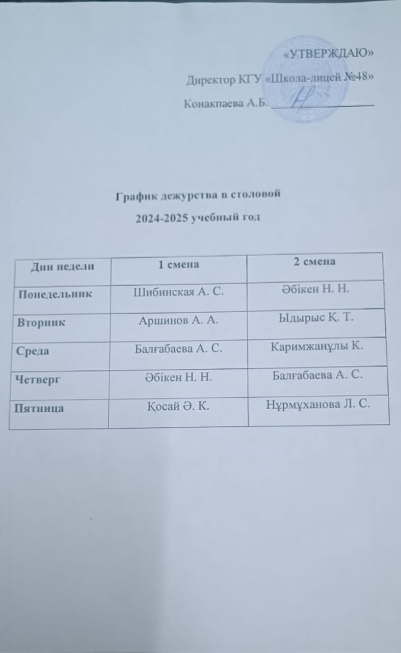 03 қыркүйек 2024 0 1 2 3 4 5 2024–2025 оқу жылына арналған асханада кезекшілік кестесі График дежурства в столовой 2024-2025 учебный год